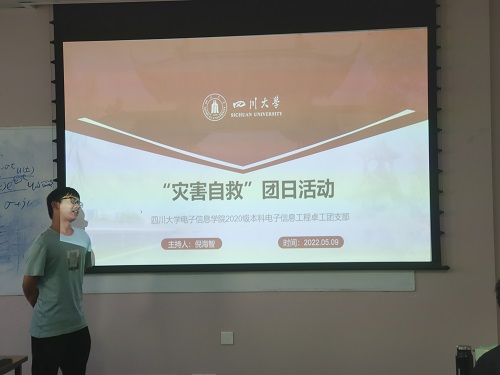 为提高学生面对灾害时的自救能力,yl23411永利(集团)有限公司官网本科2020级各班团支部陆续开展以灾害自救为主题的团日活动。2022年5月9日下午4时,学院本科2020级9班团支部在江安校区一教A401开展活动,对防灾减灾知识及基本应急避险技能进行了详细介绍。