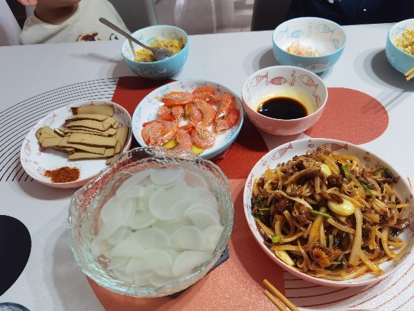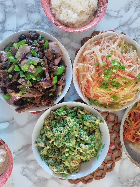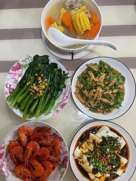 此次活动同学们体会到“一粥一饭,当思来处不易”。来自四川的王同学原本是一个厨房小白,在这次活动中,他第一次为父母做了一顿饭。“因为是第一次做饭,我的刀工非常不熟练,调料也不是很会放,做菜的步骤也不是很清楚,手忙脚乱的,做完饭后的厨房一片狼藉。其实我知道我做的菜不好吃,但是我的父母吃的时候还是一直夸我,让我既感动又有些内疚,我觉得我以后在家里要多多帮父母做饭,让他们能够真正尝到我做出来的美味。”对于一些平常在家就有做饭经验的同学来说,活动也有不一样的意义。来自陕西的惠同学本身就喜欢烹饪,在家也经常做饭,但她说“放假回家做了挺多次饭,开学前最后一次做饭,好像和之前没什么不一样,但又确实不一样了。对于从高中起就开始住校的我来说,与父母相处的时间仅仅只有假期的这段时间,每次回家,妈妈都会给我做很多可口的饭菜。我做饭的时候,能够体会到父母在下班后还要回家做饭的辛苦。”这次的活动也给了一些同学一个契机,来表达难以直接对父母说出口的爱意。来自四川的罗同学说,“在开学之后,妹妹去读书寄宿,而爸爸在深圳打拼,妈妈本来是要去陪爸爸分担压力的,但是由于疫情,我无法去学校,她就在家里照顾我。每天八点上课,她早早地就起来为我做了早餐。而每当我上完一天的课,也会看见一桌美味的食物。恰逢此次活动,我兴冲冲地参与了,为妈妈做了一顿美食,表达我对她的感谢与爱意。”