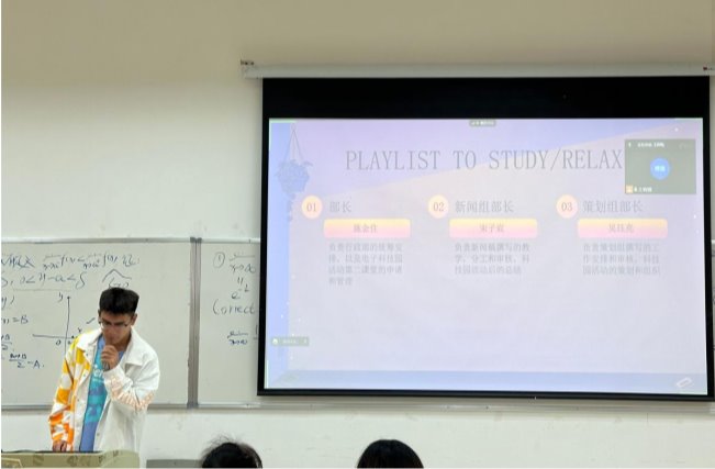 (图二:施金住同学正在介绍科技园行政部)