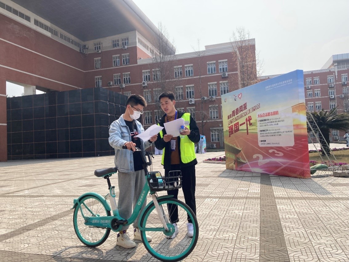 宣讲活动结束后,实践创就中心组织开展践行雷锋精神志愿活动,志愿者们对基础教学楼公共区域进行垃圾清理,并前往研究生院、文华活动中心、学生宿舍周边等共享单车停放较多的区域,对共享单车进行有序摆放并清理了车筐的垃圾。此外,为持续营造良好的校园卫生环境,志愿者们还向在校同学发出了“爱护校园卫生环境”的倡议。
