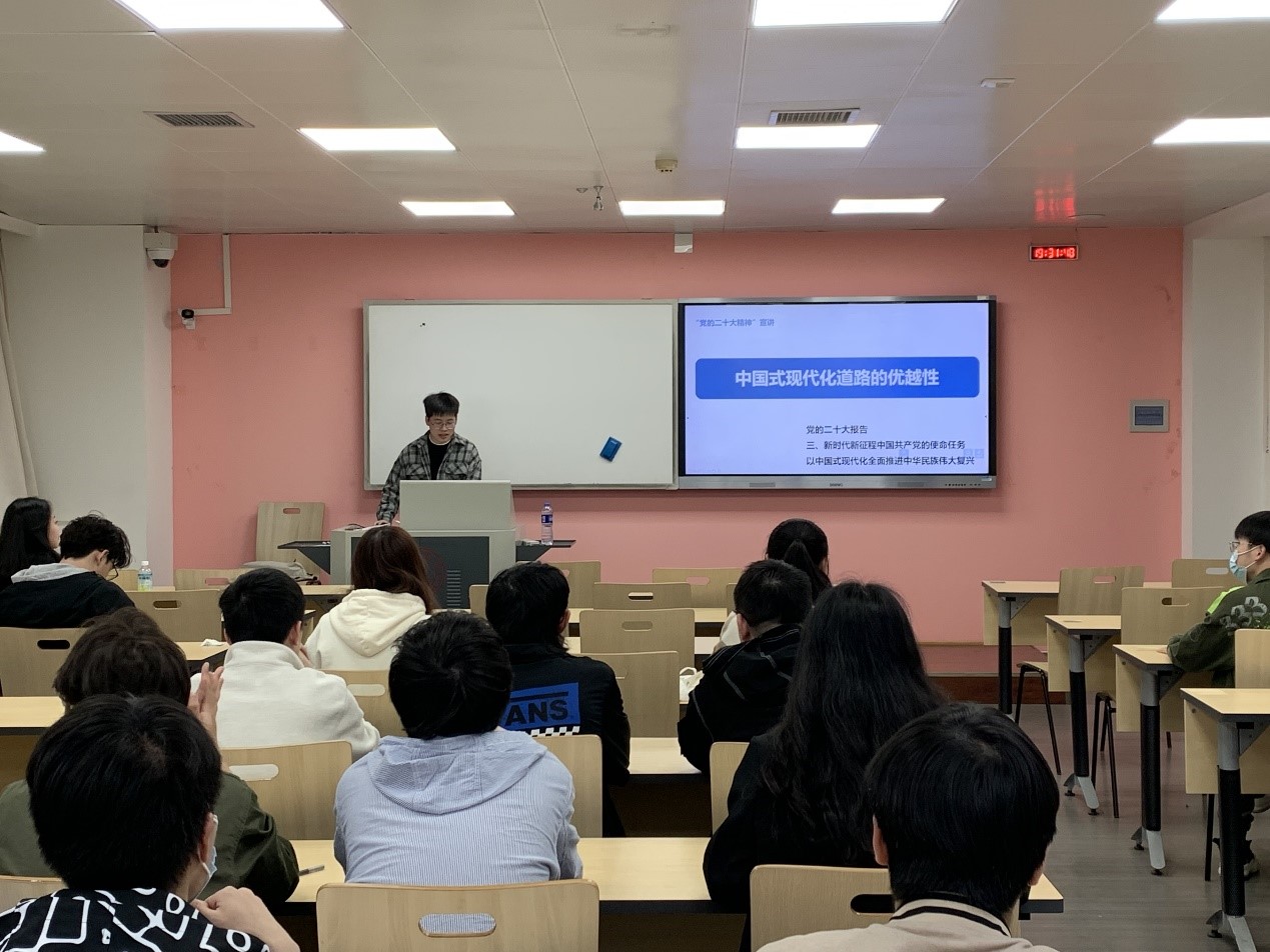 本次党组织生活,第一阶段为党的二十大精神学习。王伟丁同志从中国式现代化道路的优越性的角度入手,通过“中国式现代化以社会主义为本质属性、以人民民主为突出优势、以独立自主为鲜明特征”三个部分,为支部党员讲解了新时代新征程中国共产党的使命任务:以中国式现代化全面推进中华民族伟大复兴。