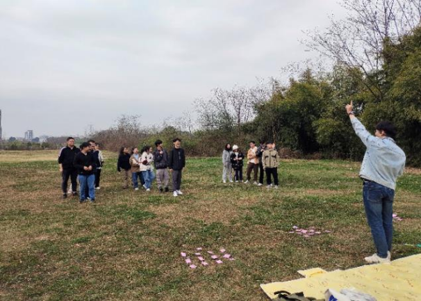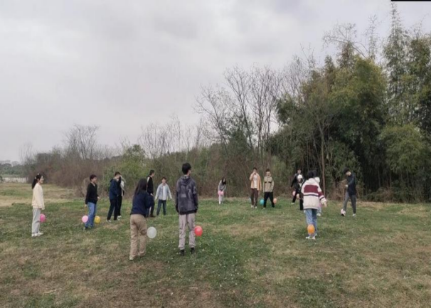 骑行活动后,同学们在青龙湖野营草坪附近停下,展开游戏与野餐活动。“植物剪贴画”“纸牌记忆”与“气球嘭嘭战”等游戏成为两个不同团支部和两个不同领域专业团员青年的最佳“破冰”方式,充分体现了青年团员的青春活力与新学期新状态。