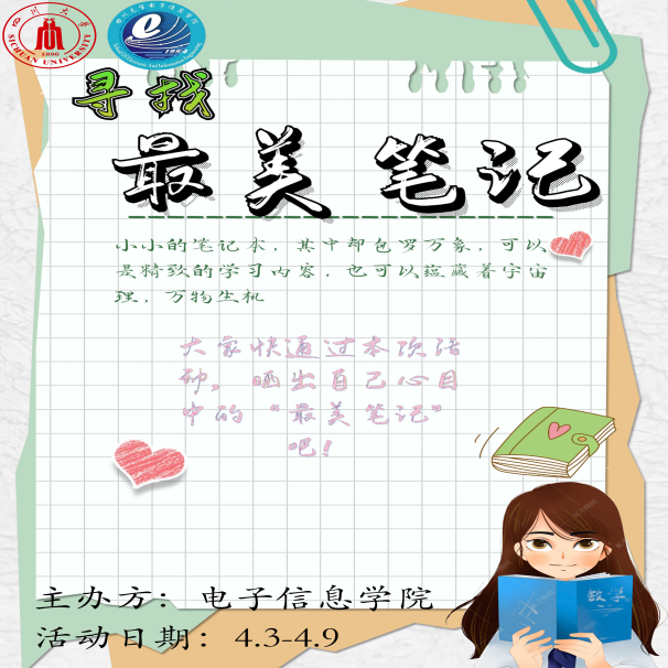 2023年3月31日至4月9日,yl23411永利(集团)有限公司官网团委学生会学科部开展了“最美学习笔记”活动。此次活动的主题为寻找“最美笔记”,活动地点为江安校区,活动对象为yl23411永利(集团)有限公司官网2022级、2021级本科学生。