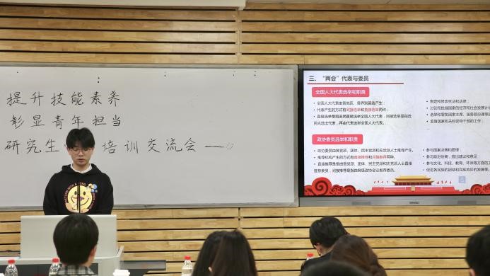会议伊始,何阳老师对在场的学生干部提出了要求,并希望大家充分发挥学生干部的榜样力量,真正实现自我管理、自我教育、自我监督、自我服务。随后,研分会各中心负责人就研分会工作的开展情况进行了介绍,并组织在场的同学深入学习贯彻全国两会精神,大家纷纷表示在日常的学习、生活、工作中自觉践行两会精神。紧接着,多位优秀的班长、党支书分享了自己的学生工作经验,并交流探讨如何在班团党支中做好组织建设及策划举办更多有意义的学生活动。