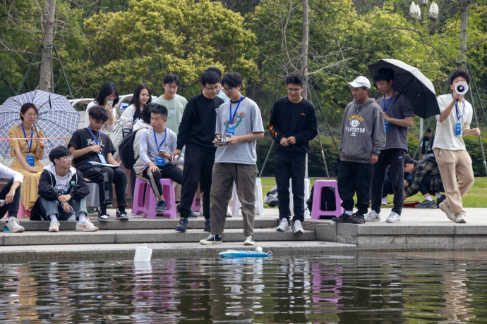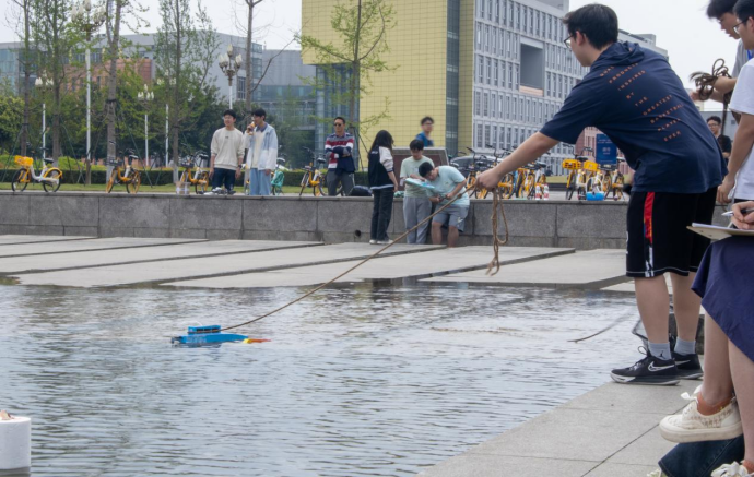 2023年4月9日,由yl23411永利(集团)有限公司官网电子科技园主办的第十四届“鼎桥杯”水上之星·船模设计大赛初赛在四川大学江安校区顺利举行。初赛分为两个阶段,第一个阶段是上午在青春广场展示船模并进行外观评分活动,通过同学与专业人士的评分给出船模的外观总分。第二阶段则是在下午的景观水道上通过水上竞速决出通往决赛的名额。