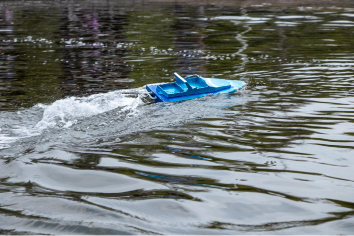 下午一点半,水上竞速环节正式开始。每支参赛队伍将根据自己的队伍编号依次进行比赛。在景观水道上,工作人员设定了竞速路线并布置一定的浮标障碍物。参赛的同学们需要控制自己的船模越过障碍,并在较短的时间内完成既定路线。比赛的过程紧张而又刺激,一艘艘火力全开的船模在景观水道中尽情驰骋,扬起水花片片。最终,工作人员根据参赛船模的用时、碰撞障碍物次数等进行综合评分,并进行排名。在活动开展过程中,为了确保参赛者、船模大赛组委会成员等的安全,工作人员也在景观水道周围采取了必要的安全措施。