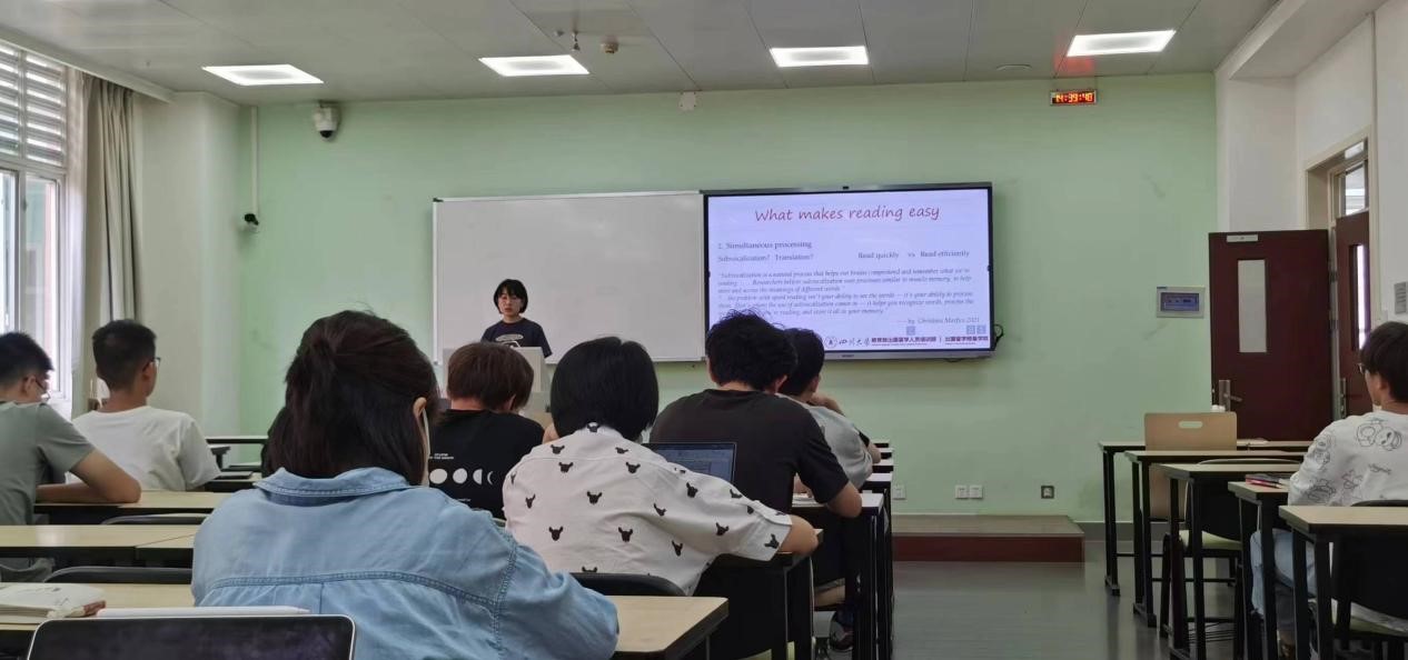 宣讲上半场,出国留学预备学院的老师深入浅出地向同学们介绍了英语阅读训练的技巧。以同学们在进行英语阅读时常出现的问题作为切入点,详细而生动地分享了一些提升英语阅读效率的方法: