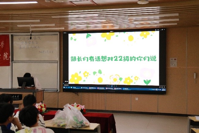 会议的最后环节是彩蛋环节。团学将干事们在第一次团学例会写的展望未来的明信片发回干事手中,并展示部长们想对干事们说的话和干事们想对部长说的话。