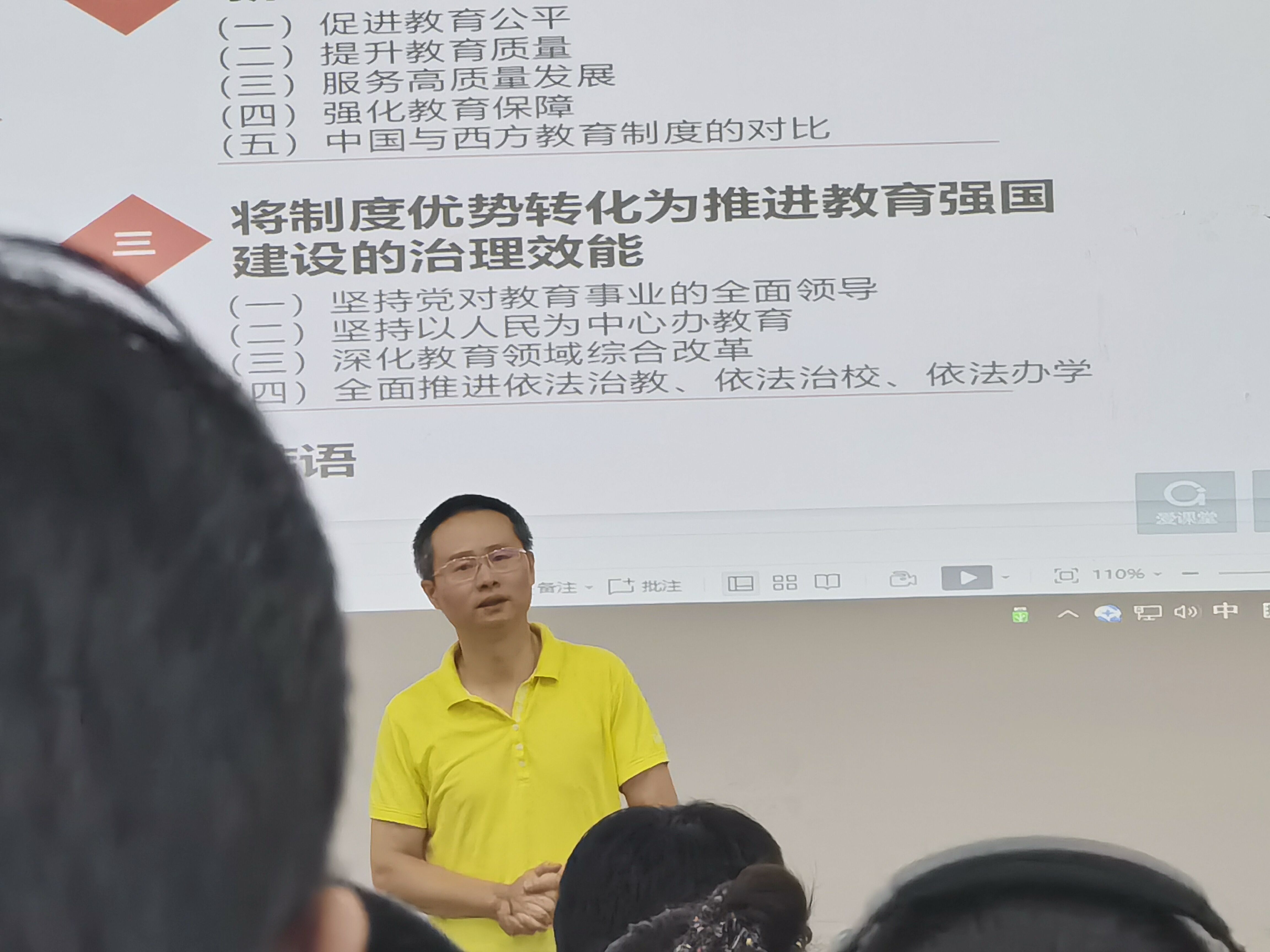 9月22日下午,我院2020级本科电子信息工程班和光电班顺利进行了的第一次形教课。谢老师围绕着“发挥制度优势,推进教育强国建设”的主题授课,谢老师首先从我国教育发展的基本制度进行了讲述,给学生们仔细地讲解我国现在关于教育发展的制度;接着谢老师从我国国情和社会制度出发,讲述了新时代教育发展中的制度优势;谢老师也着重强调了在新时代推进教育强国建设上应该如何提高治理效能。