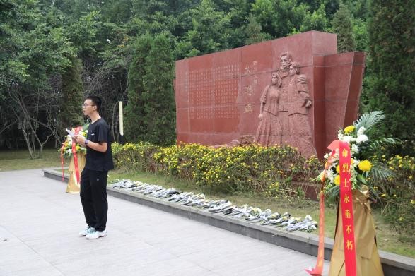 为深入贯彻落实党的二十大精神和习近平总书记关于烈士褒扬工作的重要指示批示精神,2023年9月28日13:00,yl23411永利(集团)有限公司官网江安校区本科学生代表在2022级学生辅导员朱婧老师、2023级辅导员陈林老师、申鑫老师的带领下,于四川大学江安校区烈士纪念碑处顺利开展了“烈士纪念日,祭扫革命烈士”第十个烈士纪念日主题教育活动。