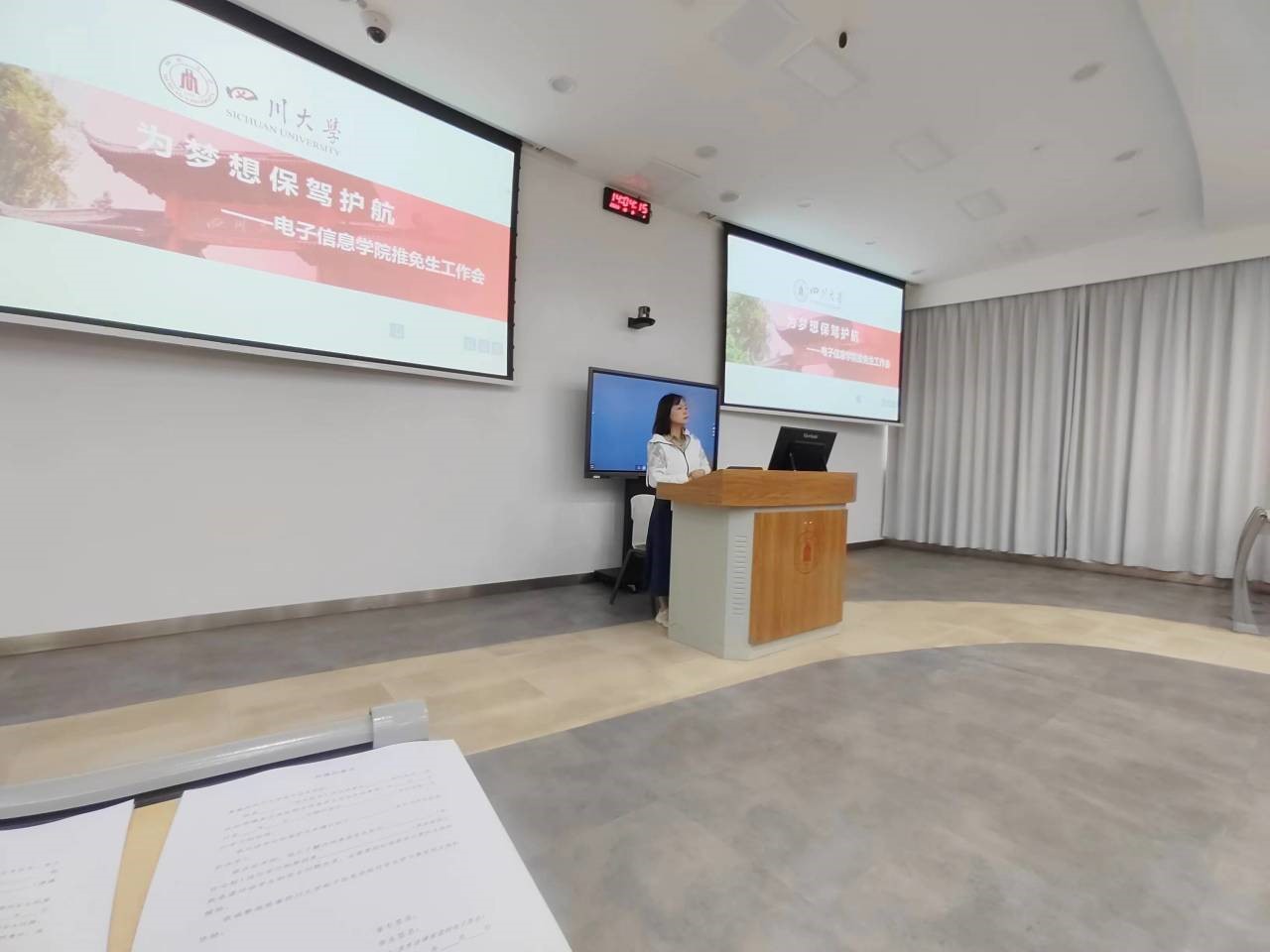 2023年10月9日下午,yl23411永利(集团)有限公司官网2020级“为梦想保驾护航”——推免生工作会议在四川大学望江校区基础教学楼C203举行。yl23411永利(集团)有限公司官网2020级辅导员陈晓娟老师和学院教务处温文婷老师,分别就推免接受后的注意事项以及推免生在校外做毕业论文两个方面与2020级yl23411永利(集团)有限公司官网推免学生进行交流。在注意事项方面,陈晓娟老师从多个方面告知同学们即使已经成功拟录取,在大四期间如若出现特殊情形依然会被取消资格,例如毕业论文成绩未达到80及以上,体质测试成绩未达标等等,勉励同学们继续学习,钻研未来的科研方向,认真完成毕业论文和大四相关事项,在学校顺利度过最后一段时光,顺利毕业。同时,陈晓娟老师和温文婷老师组织大家填写了推免生承诺书。