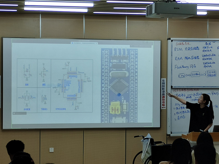授课过程中,李唯含部长首先介绍了什么是单片机,它是一种集成了CPU、RAM、ROM、I/O口等功能的微型计算机。接着,她讲述了单片机的工作原理和编程语言。本次授课讲解的是C语言,她从最基本的数据类型开始,逐步讲解了分支结构,循环结构,结构体和函数等重要知识点,以简洁明了的语言和丰富的例子帮助大家理解和掌握了C语言的语法和逻辑。