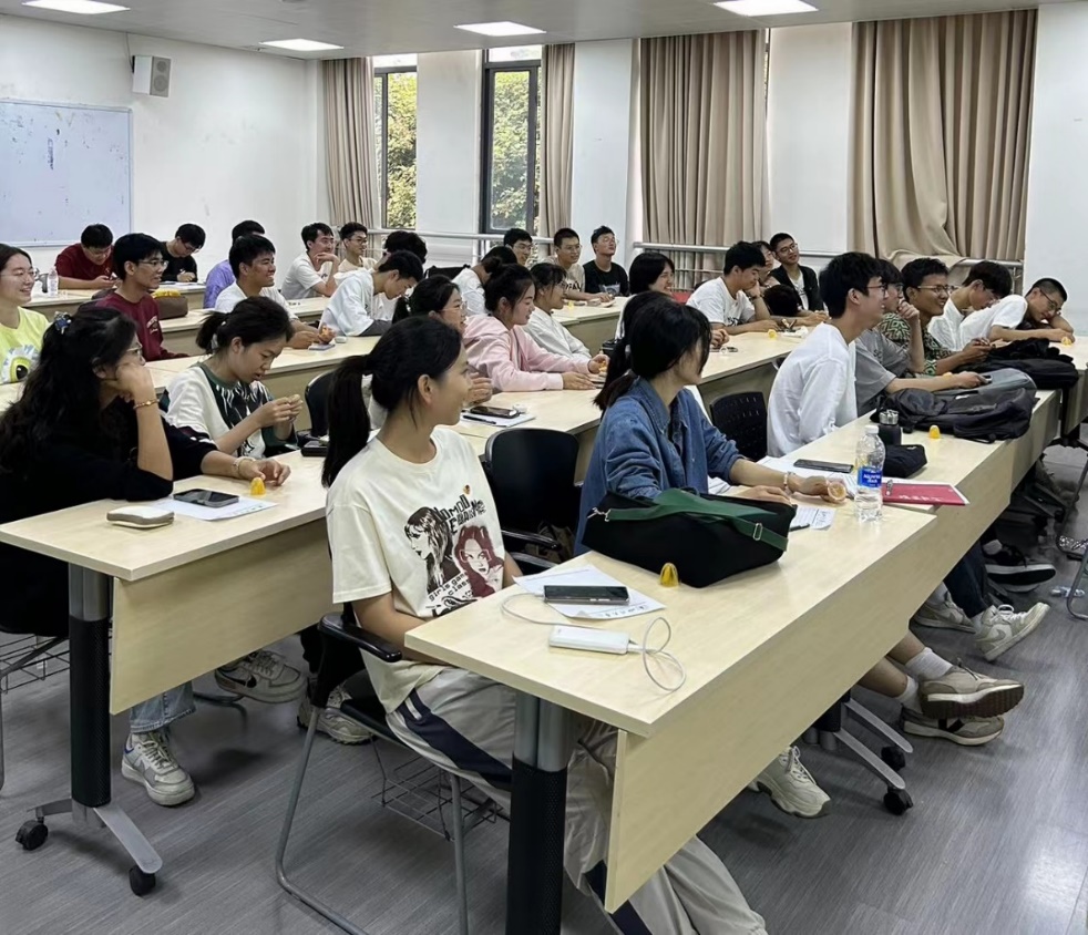 图为同学们认真聆听吴老师的讲话