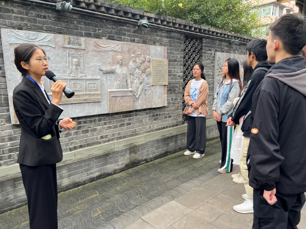 图为讲解员讲述川大其他革命烈士事迹