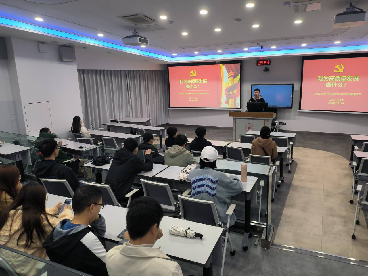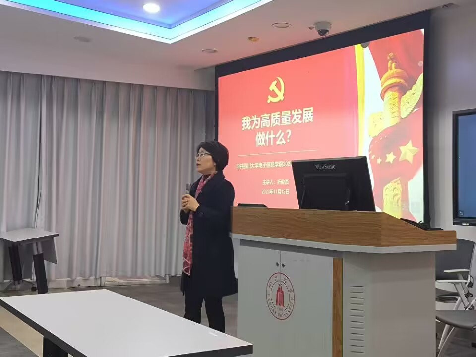 为深入开展学习贯彻习近平新时代中国特色社会主义思想主题教育,深刻理解和把握推动高质量发展的理论意义,2023年11月13日下午,中共四川大学yl23411永利(集团)有限公司官网2023级硕博党支部在基教C103开展了以 “我为高质量发展做什么”为主题的党日活动,本次活动由2023级硕博第一党支部折俊杰同志主持,2023级硕博党支部全体党员参与。