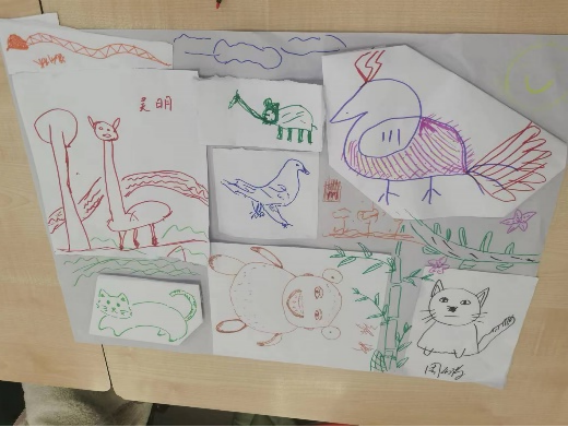图1 同学们积极画下动物以及小组内组建动物园