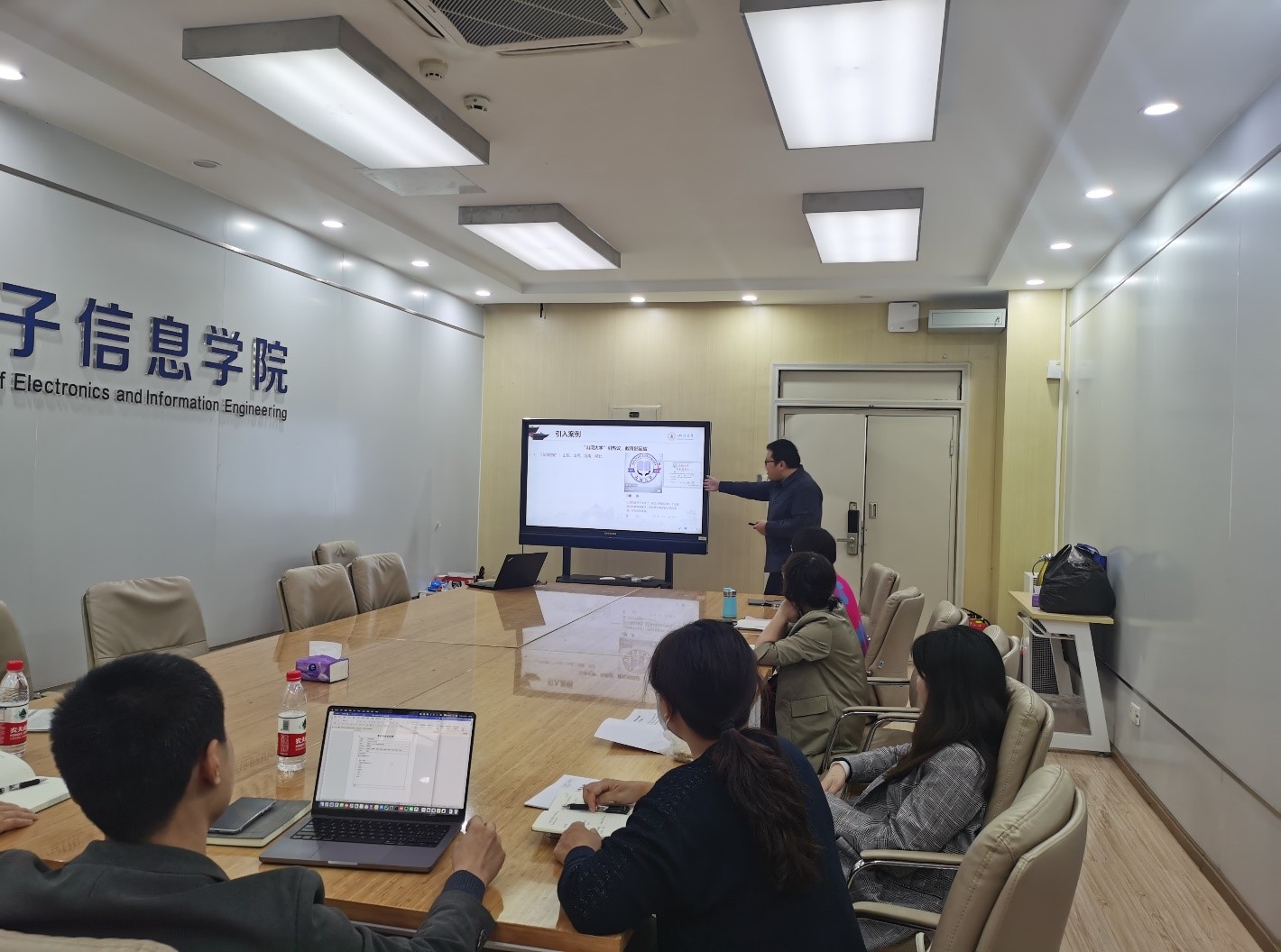 会议上,主备课人申鑫老师以《发展制度优势 推进教育强国建设》为题,针对教学单元的授课思路、授课内容等进行备课展示,并对“山河大学”事件进行剖析,提出思政课程创新方向。申鑫老师提出备课首先重视综合素质教育,通过在课程中融入更多互动元素、实践案例,引导学生参与社会实践活动,提高学生创新精神和实践能力;其次注重学生的个性化发展,为学生提供多元化的学习机会,充分挖掘个人潜力;同时,要强调学科融合,将思政课程与专业课程有机结合,实现两者的协同育人,增强学生爱国情怀和社会责任感,为中国特色社会主义事业源源不断培养时代新人。全体参会思政课教师围绕备课内容展开了共同探讨,对教学专题设计、案例引用、互动环节等方面提出了改进与完善建议。