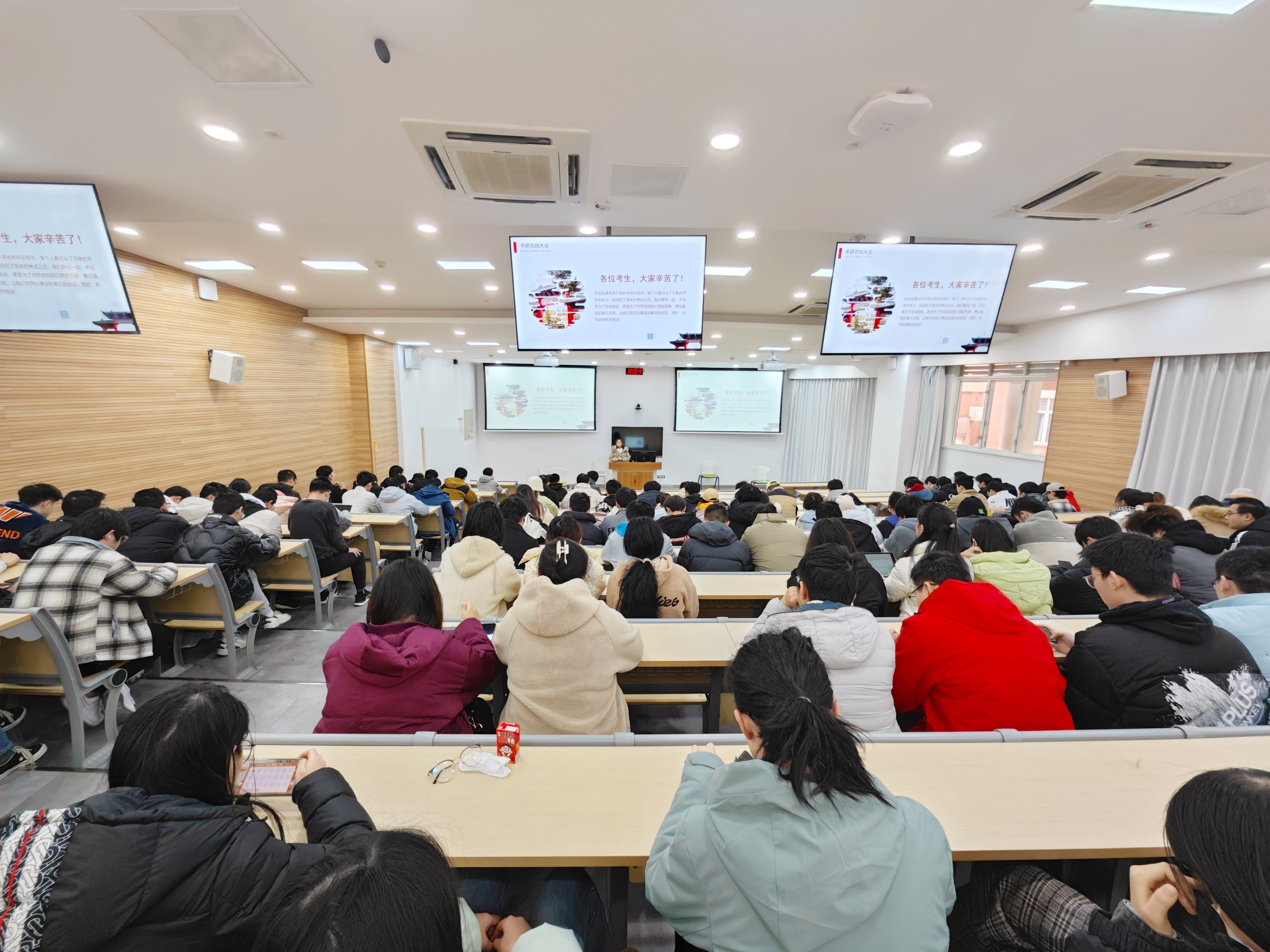 陈晓娟老师通过往年的事例与学生们分享了考研结束阶段的经验。她首先肯定了那些认真备考的同学,提醒他们,参加考试就是与数十万人竞争,这一点需要常常提醒自己。接着,她通过往年本学院的报考与录取人数给学生们树立了信心。此外,她还针对那些可能会经历考研失败和接受调剂的同学,分析了这个阶段的利弊,并针对考研失败后准备就业的同学,对下学期春季招聘进行了说明,包括简历准备和就业信息网信息的更新等方面。最后,陈老师给同学们加油鼓劲:“考研是人生中一次难得的体验,无论结果如何,我们都能够从中得到提升和收获。”
