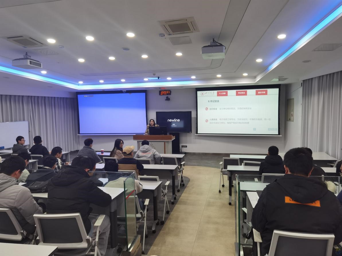 接着,教务处温老师勉励同学们认真做好毕业设计和实习的规划和准备,做到毕设、实习两不误。同时在实习期间,需密切关注学校以及学院在线上发布的任何消息。实习期间要把人身安全放在第一位的,严格遵守学校和实习单位的规章制度以及实习所在地的工作规定;珍惜实习机会,努力将在校所学知识融入实习中,做到学有所获、学以致用。