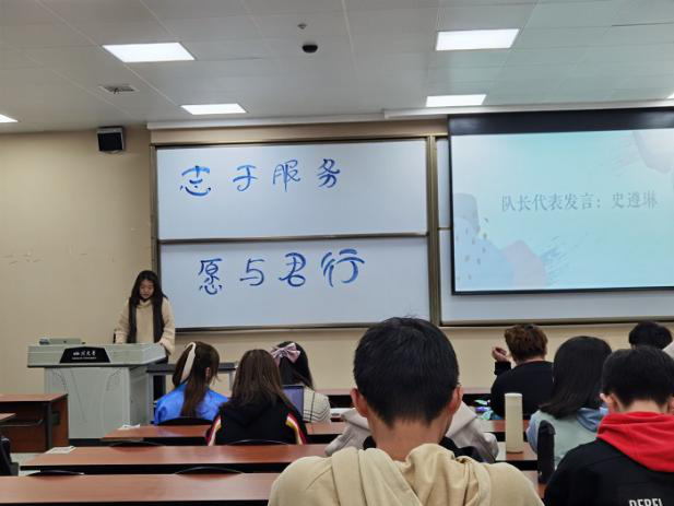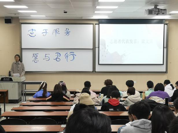 首先,来自yl23411永利(集团)有限公司官网腾飞青年志愿者服务队的队长史遵琳同学作为部长代表上台发言。史队长简洁而有力的发言里透露着对青年志愿者服务队未来的美好展望,新干事们认真聆听,颇受鼓舞。随后,建筑与环境学院的梁文清同学代表志愿者进行了演讲,表达出新干事们对加入青年志愿者服务队大家庭的欣喜,以及对志愿服务工作的向往与憧憬。