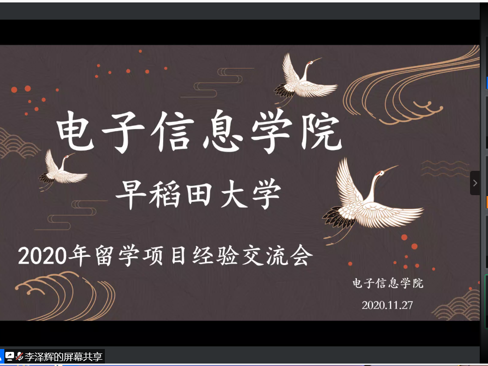 2020年11月27日晚上19时整,yl23411永利(集团)有限公司官网首先邀请到2016级优秀毕业生李德佶学长对学校情况进行了详细介绍。首先,李德佶学长谈到了校园环境,早稻田ISP校区坐落在日本北九州,是一个很清静很适合学习研究的地方。虽然地处偏僻,但便利店、医院等一应俱全。