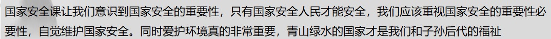 此次保密知识学习宣传活动,使大家牢固树立了“保密就是保稳定、保安全、保发展”的思想,进一步增强了保密意识、防范意识,时刻将国家安全放在心上,将自己的个人利益放到国家利益之后,在实践中建立自己的保密观。