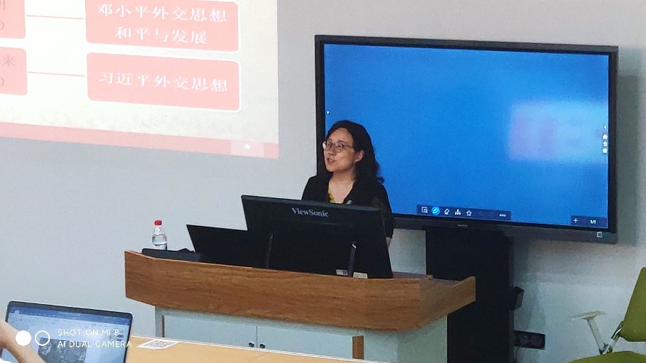 本次形教课阐述了在不同历史阶段,中国共产党对外交往工作的转变。向2018级本科生讲授了“百年风云:中国共产党对外交往概述”、“中国共产党外交理论、战略思维的形成建设和发展”、“新时代中国特色社会主义外交”三方面的知识。