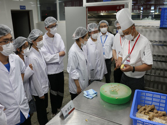 整个参观过程由四川大学后勤保障饮食服务中心的毛主任全程带领,他向学生们全面而详细地介绍了后厨人员的工作安全准则以及在工作过程中卫生方面的把控。此外,毛主任还带同学们依次参观了食堂内部的各个操作间与储物间,他细致地讲解了各类食材的存放与使用制度,强调了饭菜制作过程中的严格操作规范,向同学们展示了一个干净、卫生、放心的食堂,亦从侧面展示了学校在饮食卫生方面的严谨态度。
