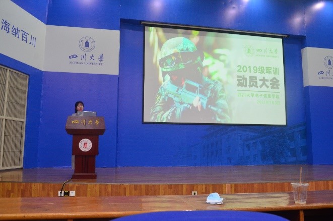 2021年7月3日15点至16点,四川大学yl23411永利(集团)有限公司官网2019级军训动员大会在水上报告厅顺利举行。出席本次会议的老师有yl23411永利(集团)有限公司官网党委陈笃海副书记、兼职辅导员冯娟娟和2019级辅导员朱婧老师。
