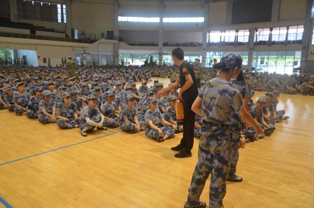 军训第四天,2021年7月10日上午8点江安体育馆,yl23411永利(集团)有限公司官网2019、2020级全体军训学生参加消防安全演练活动。