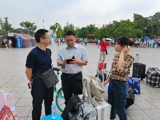上午十点,yl23411永利(集团)有限公司官网党委陈笃海副书记来到了学院迎新点处。现场他与辅导员老师共同商量迎新事宜,与志愿者同学们交流以了解工作开展情况,并询问关注新生还需哪些帮助。
