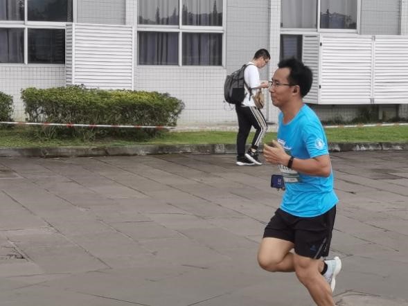 下午三点,乐跑活动正式开始。本次乐跑活动的路线覆盖环绕整个校园,全长达五公里。初秋秋高气爽,正是适宜跑步的时候。两位参赛老师提前做好了准备工作,此时站在出发点的跑道上,如图箭在弦上,随时准备开始比赛。奔跑在美丽的川大校园中,一边欣赏银杏美景,一边享受着有氧运动带给人的满足与愉悦,两位老师都乐在其中,尽情享受着比赛过程。比赛结束后,两位老师的状态也很不错,展现出了优异的耐力与体能。
