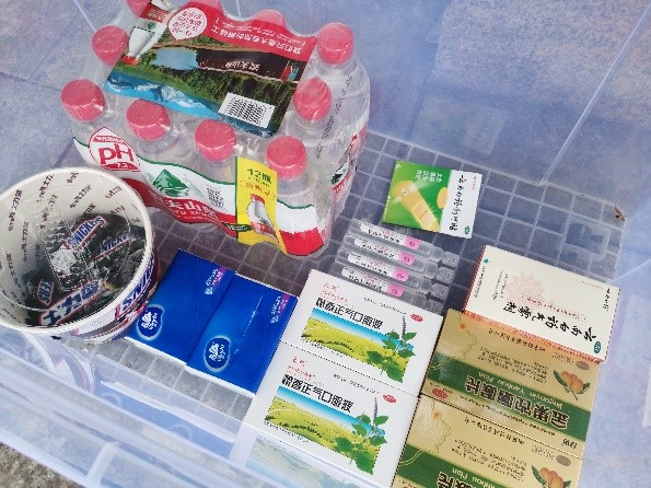 下午一点十分许,学院便安排了团委学生会的志愿者和后勤人员在青春广场附近集合。几位同学与辅导员老师一起做好了预先的后勤工作,准备了水、补充能量的巧克力和药物等。
