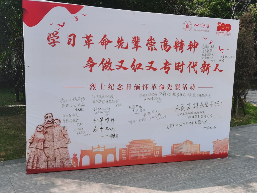 为缅怀先烈风范,追思前辈功绩,学习担当精神,2021年9月30日上午11时许,四川大学yl23411永利(集团)有限公司官网20、21级本科学生开展烈士纪念日公祭活动。2021级辅导员孟滋常老师、2020级辅导员陈晓娟老师及团学指导老师朱婧老师出席了此次活动。