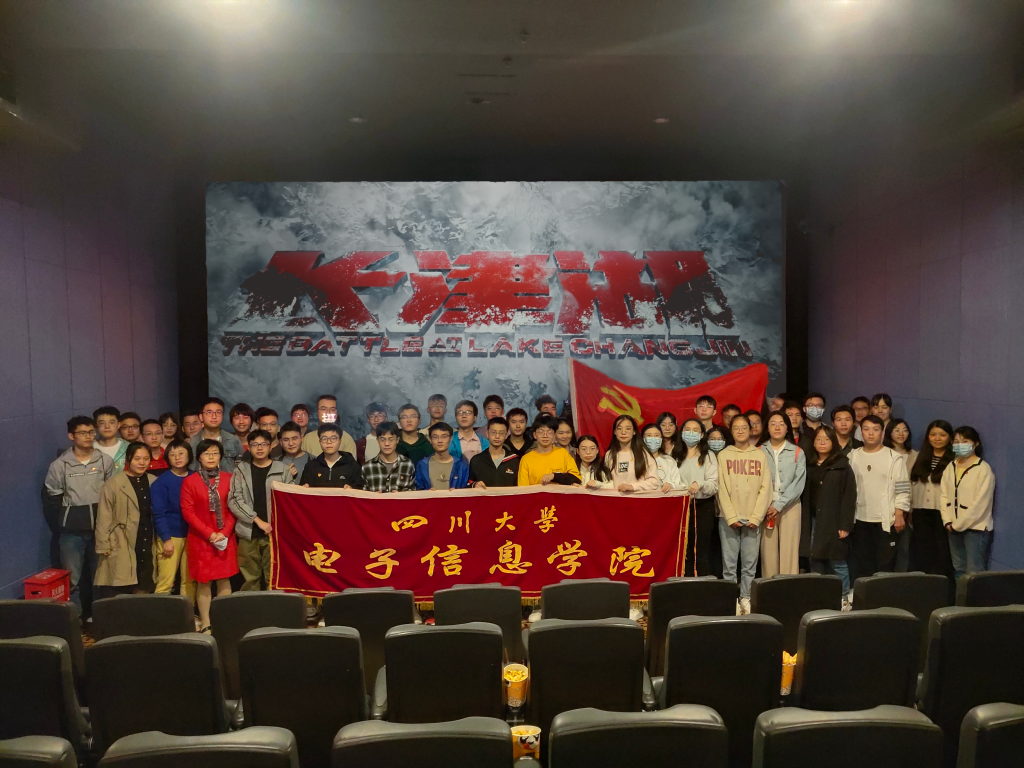为庆祝中华人民共和国成立72周年,进一步激发广大党员干部爱党爱国热情,四川大学yl23411永利(集团)有限公司官网2020级研究生党支部、2019级研究生党支部、2018级本科党支部于2021年10月11日下午2时,在学府影城组织题为“传承抗美援朝精神,凝聚新时代复兴力量”的观影活动。通过组织党员同志观看电影《长津湖》,让他们重温历史,铭记历史,不忘英雄光辉事迹。yl23411永利(集团)有限公司官网2020级研究生党支部书记何惠老师,2019级研究生党支部书记何阳老师,2018级本科党支部书记陈林老师参与组织了本次观影活动。
