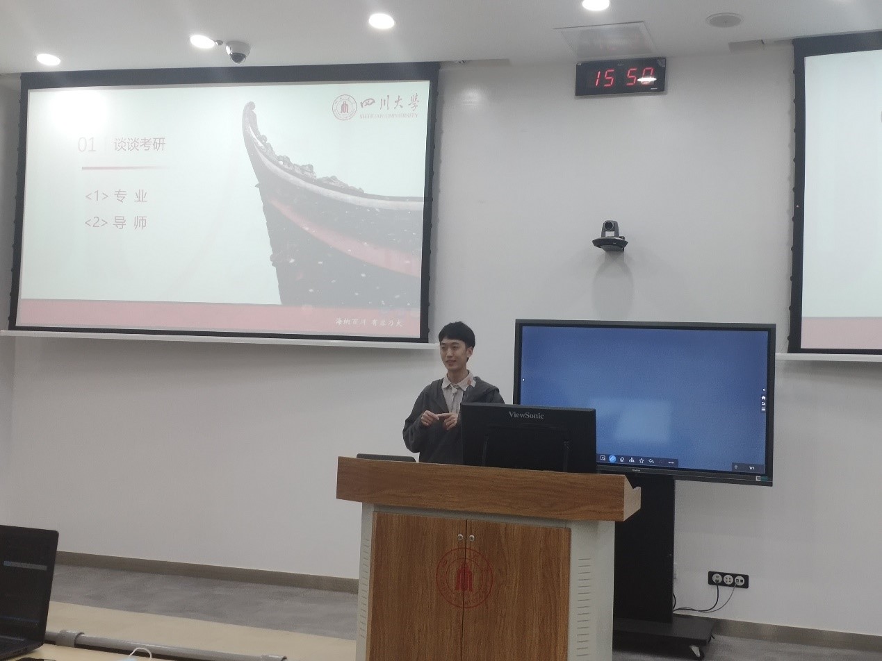 分享会开始时,龙翔老师向同学们分别介绍了分享者张林志学长和陈忠照学长的相关信息,并对考研学子们进行了鼓励。