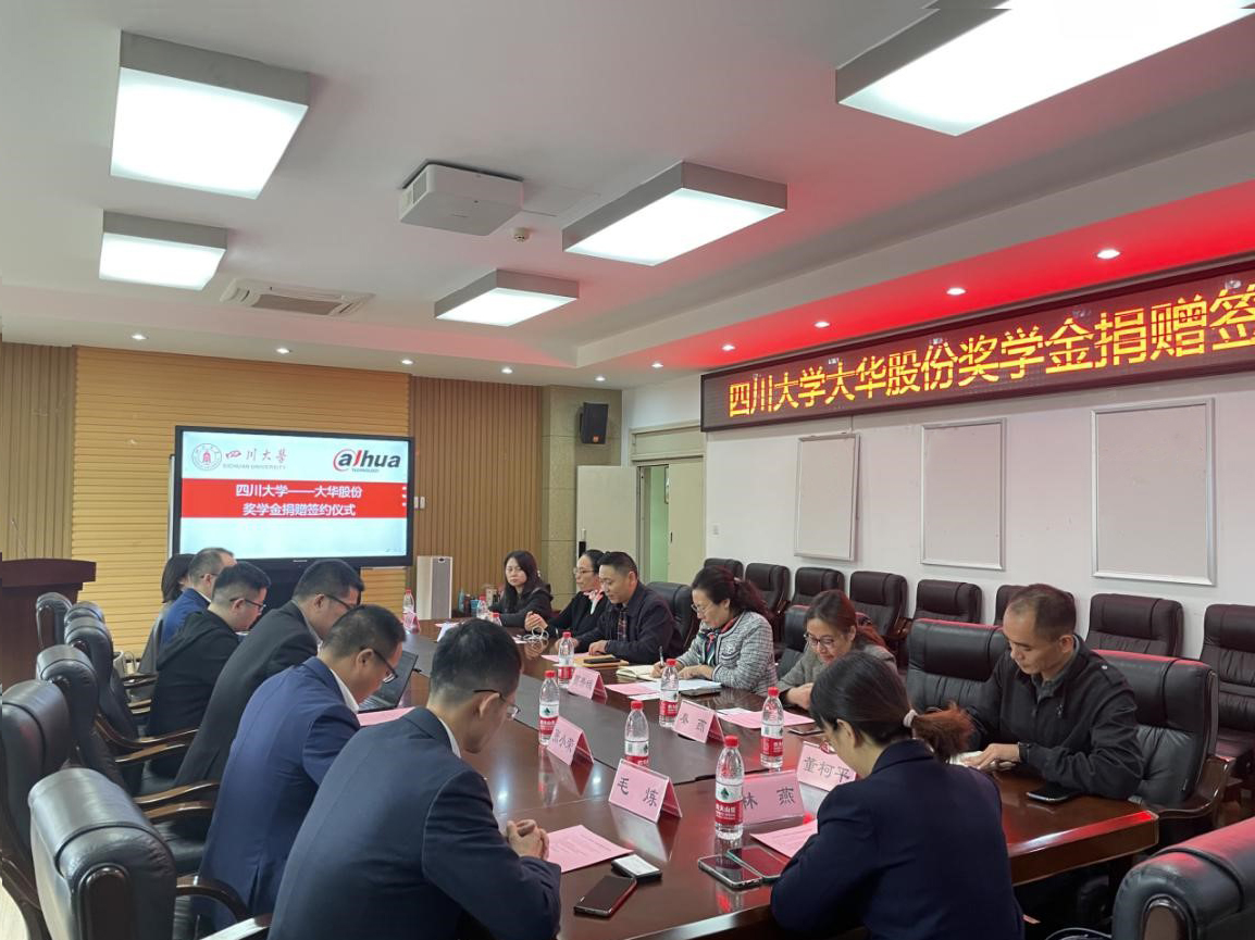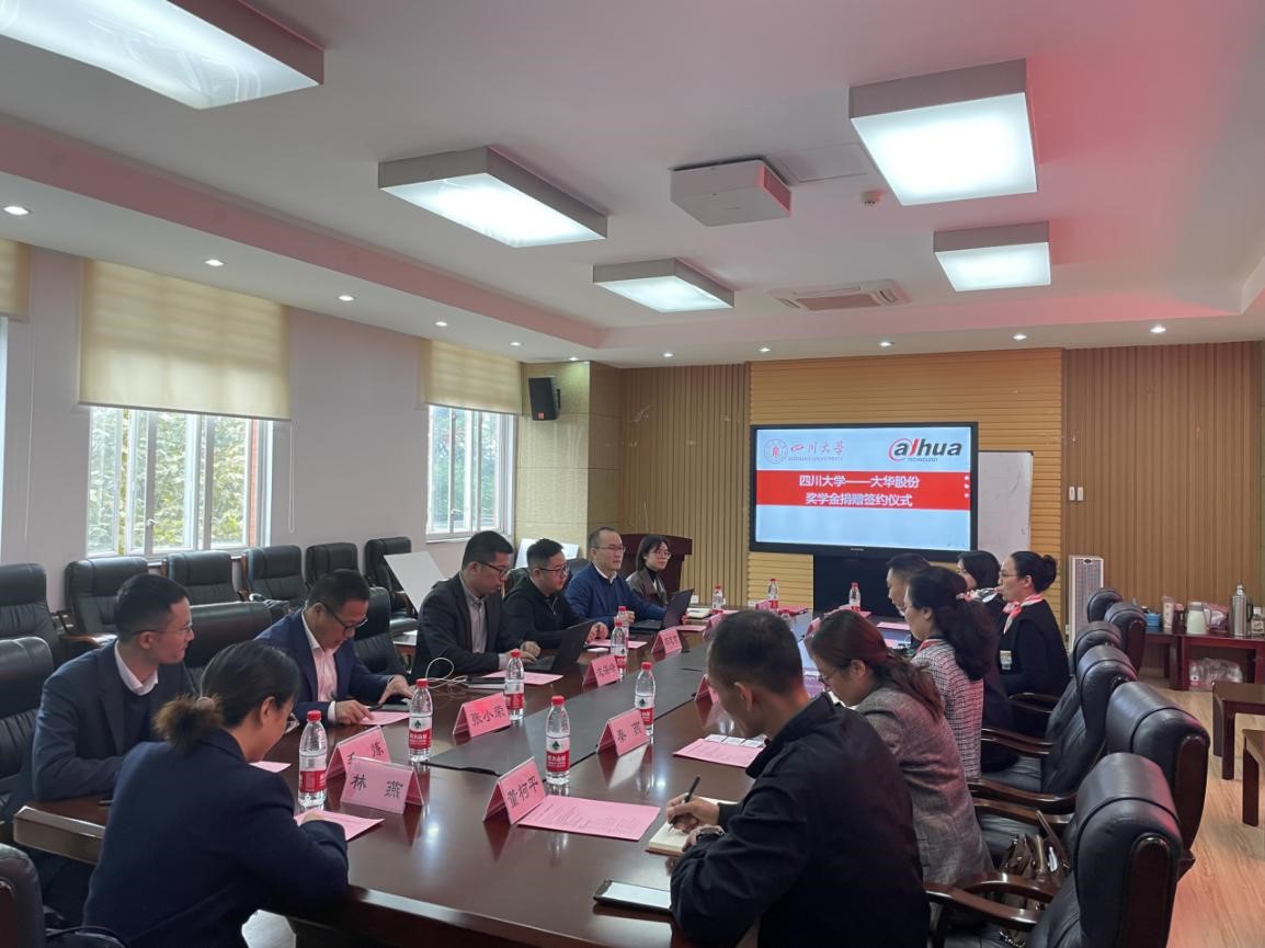 四川大学教育基金会副秘书长贾秀娥与江大华技术股份有限公司人力资源总监沈海峰分别代表双方签署了四川大学“大华股份”奖学金捐赠协议,贾秀娥作为学校代表接受捐赠,并向沈海峰颁发捐赠证书,自此,四川大学“大华股份”奖学金正式成立。
