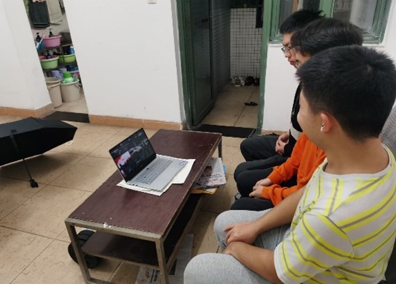 同学们在宿舍进行观看