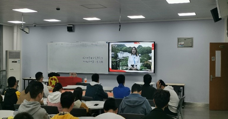 同学们在教室进行观看