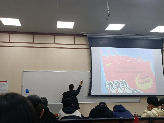 为进一步加强同学们对革命时期共产党员担当使命、不怕牺牲、英勇斗争精神的学习,2021年11月2日下午5时,yl23411永利(集团)有限公司官网电子信息工程2019级二班全体学生,于东二教301教室召开“讲述身边的党史故事”主题班会,会议由班长崔恒昱主持。