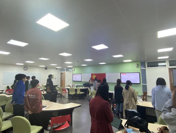 首先,全体学生起立合唱团歌,在激昂振奋的歌曲声中,活动拉开序幕。全体学生一起收看中央电视台《党课开讲啦》节目第1期——《党的光辉历程》。观看完节目后,团支书带领同学们一起梳理了视频内容,并就视频中谢教授提出的“如何看待现在一些年轻人功利性的入党动机”问题展开讨论。同学们虽各抒己见,却达成核心观点的一致性——我们应该端正思想,吃苦在前,享乐在后,把人民群众始终放在第一位。作为新时代的青年,我们要不忘初心,牢记使命,勇敢担当起青年人的时代责任,做新时代的顶梁柱,做新中华的领头羊,砥砺前行,为实现中华民族伟大复兴而努力奋斗!