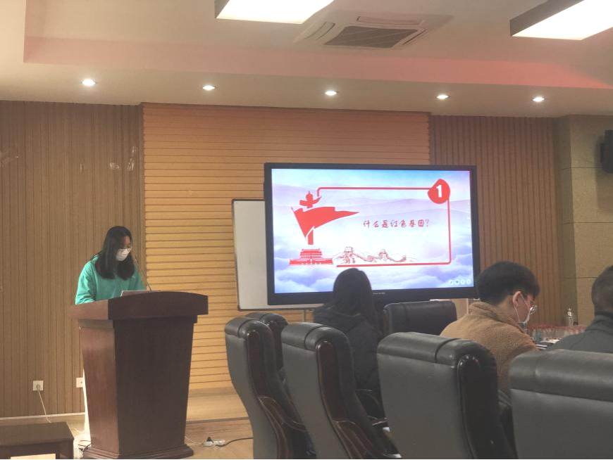 本次宣讲活动的主题是“传承红色基因,永葆初心本色。”刘姝琪同学首先讲解了“什么是红色基因”。在讲解时刘姝琪同学引述了从中国共产党建立到社会主义发展过程中的种种英雄人物的生动事例。这些故事中有“两弹一星尽显忠”的邓稼先,有“怀有老一辈爱国主义精神”的屠呦呦,有“不教饥馑闹神州”的袁隆平,亦有“蜡炬成灰泪始干”的张桂梅。刘姝琪同学在详细讲述他们的光辉事迹后以鲁迅先生的话做小结:“我们从古以来,就有埋头苦干的人,有拼命硬干的人...这就是中国的脊梁”。