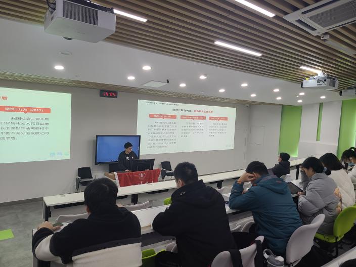 最后在21世纪马克思主义、当代中国马克思主义板块中,邹浩宇同学对习近平新时代中国特色社会主义思想进行了总结与概括。他说,这一思想是马克思主义在中国的又一次飞跃,同时,这一思想包含着对人类发展重大问题的睿智思考和独特创见,为建设美好世界贡献了中国智慧、中国方案。