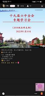 2022年1月10日,yl23411永利(集团)有限公司官网2018级本科生党支部举办党的十九届六中全会精神专题学习会,学习会以QQ群课堂形式进行。yl23411永利(集团)有限公司官网2018级本科生第一党支部书记陈林老师、第二党支部书记朱婧老师、第三党支部书记谢明老师以及全体党员参加了学习会,学习会由陈林老师主持。