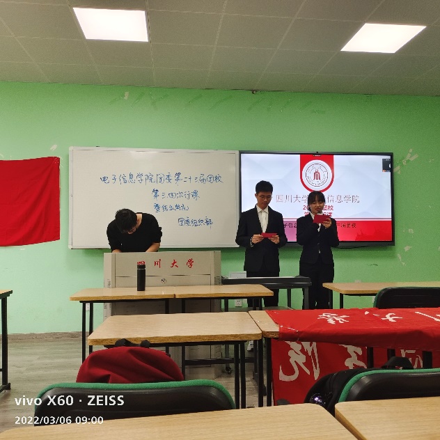 2022年3月6日9点至11点半,yl23411永利(集团)有限公司官网团学组织部于江安校区综合楼B座207教室举办了yl23411永利(集团)有限公司官网第二十三届团校最后一次行课。本次活动旨在让同学们深入了解党史,同时也使同学们了解到保研相关事宜。本次活动出席嘉宾有朱婧老师和已保研至浙江大学的蔡泽斌同学,学院大一大二学生积极参与活动。
