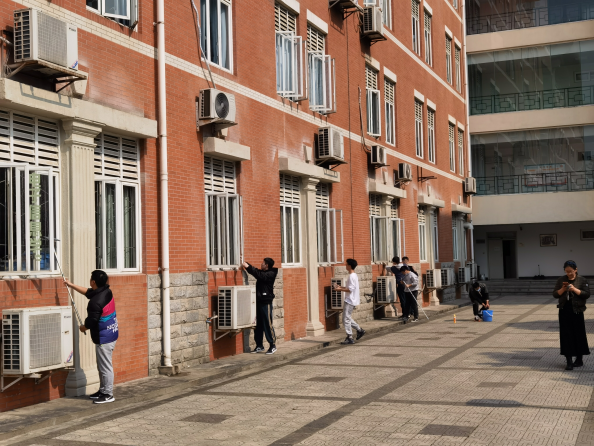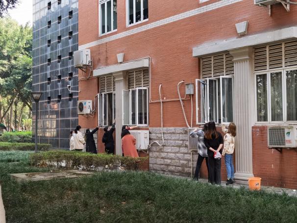 下午两点,党支部党员佩戴党徽,带好清扫工具来到学院基础教学楼A座外集合。全体成员分成两个小组,分别对基础教学楼A座学院办公室的玻璃和窗台进行了全面的清洁工作。活动中,每位同学积极参与,劳动认真细致卖力,不放过任何一个卫生死角,清洁工作有条不紊进行。