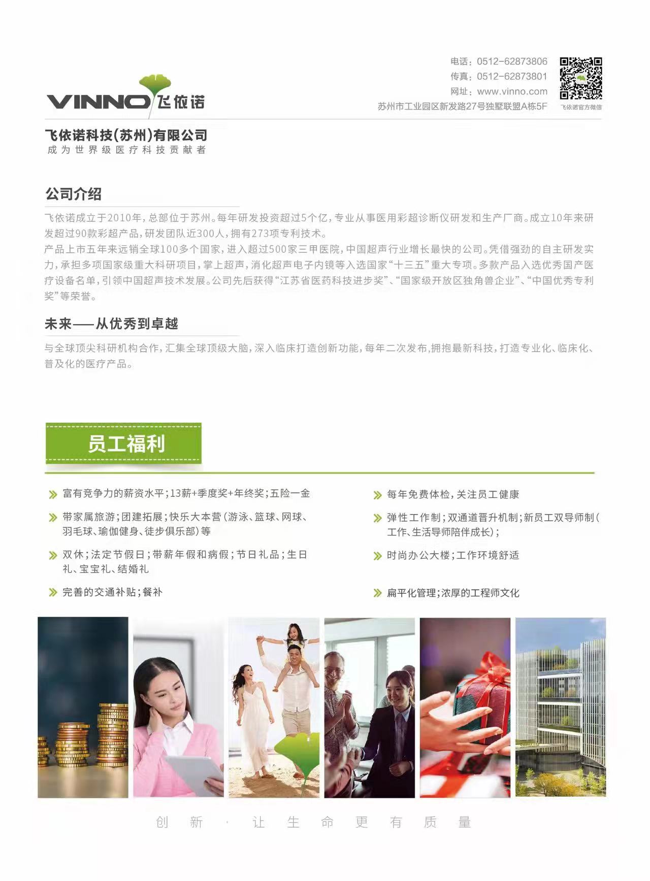 飞依诺成立于2010年,总部位于苏州。每年研发投资超过5个亿,专业从事医用彩超诊断仪研发和生产厂商。成立10年来研发超过90款彩超产品,研发团队近300人,拥有273项专利技术。