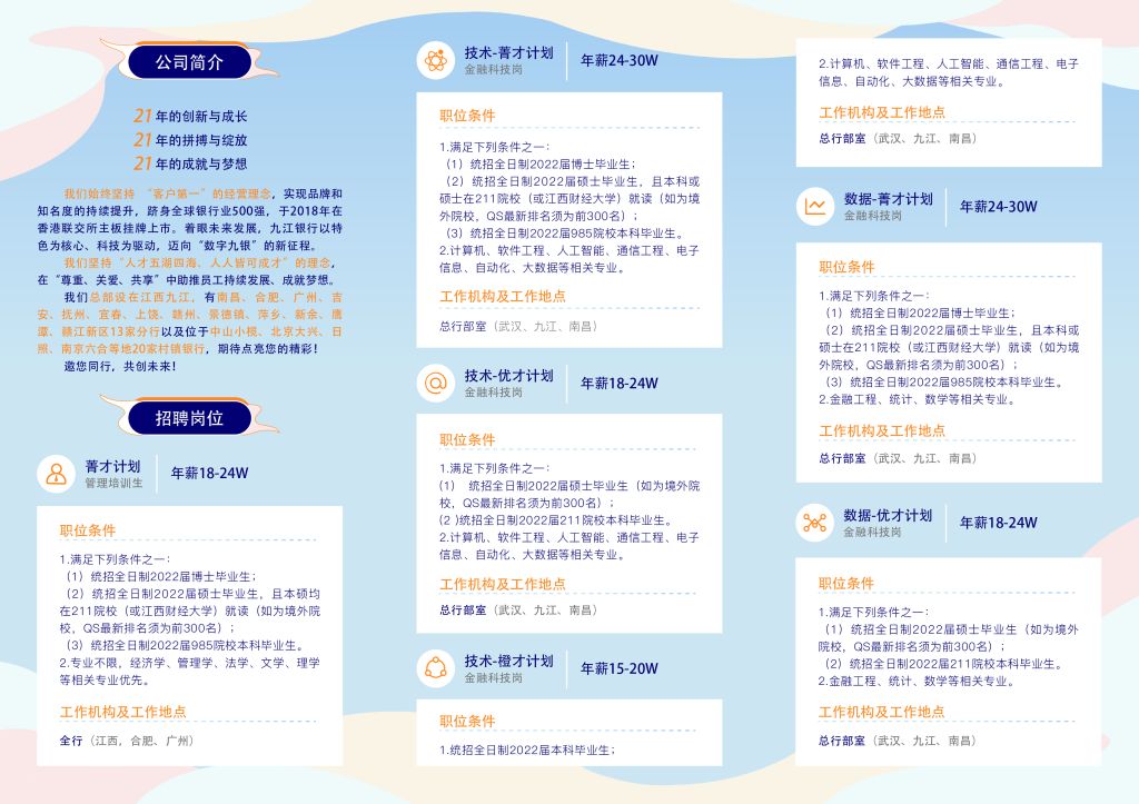 【九江银行2022届校园招聘】