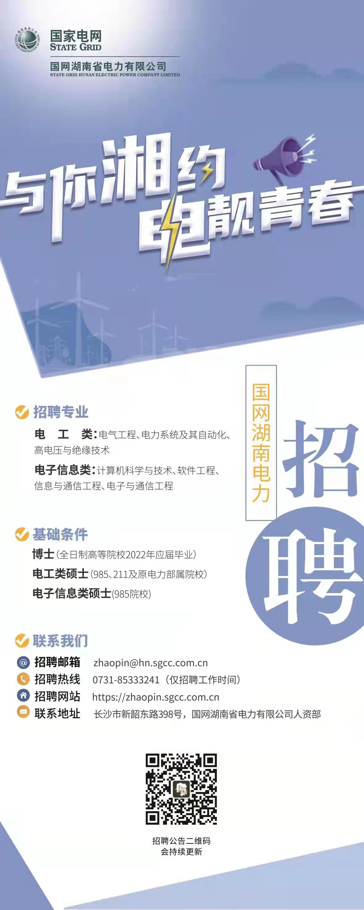 10月21日10:00基础教学楼A512 国网湖南省电力公司招聘会