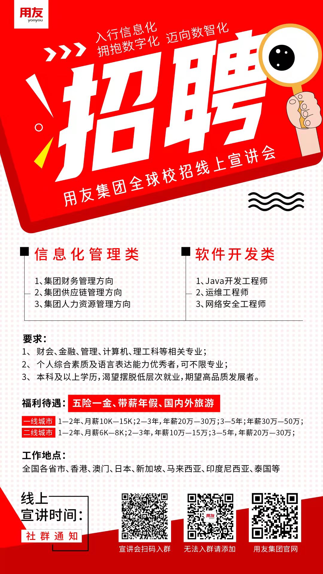 人才需求单位: 用友全球 300 多家分子公司, 1000 多家伙伴单位, 150 万甲方